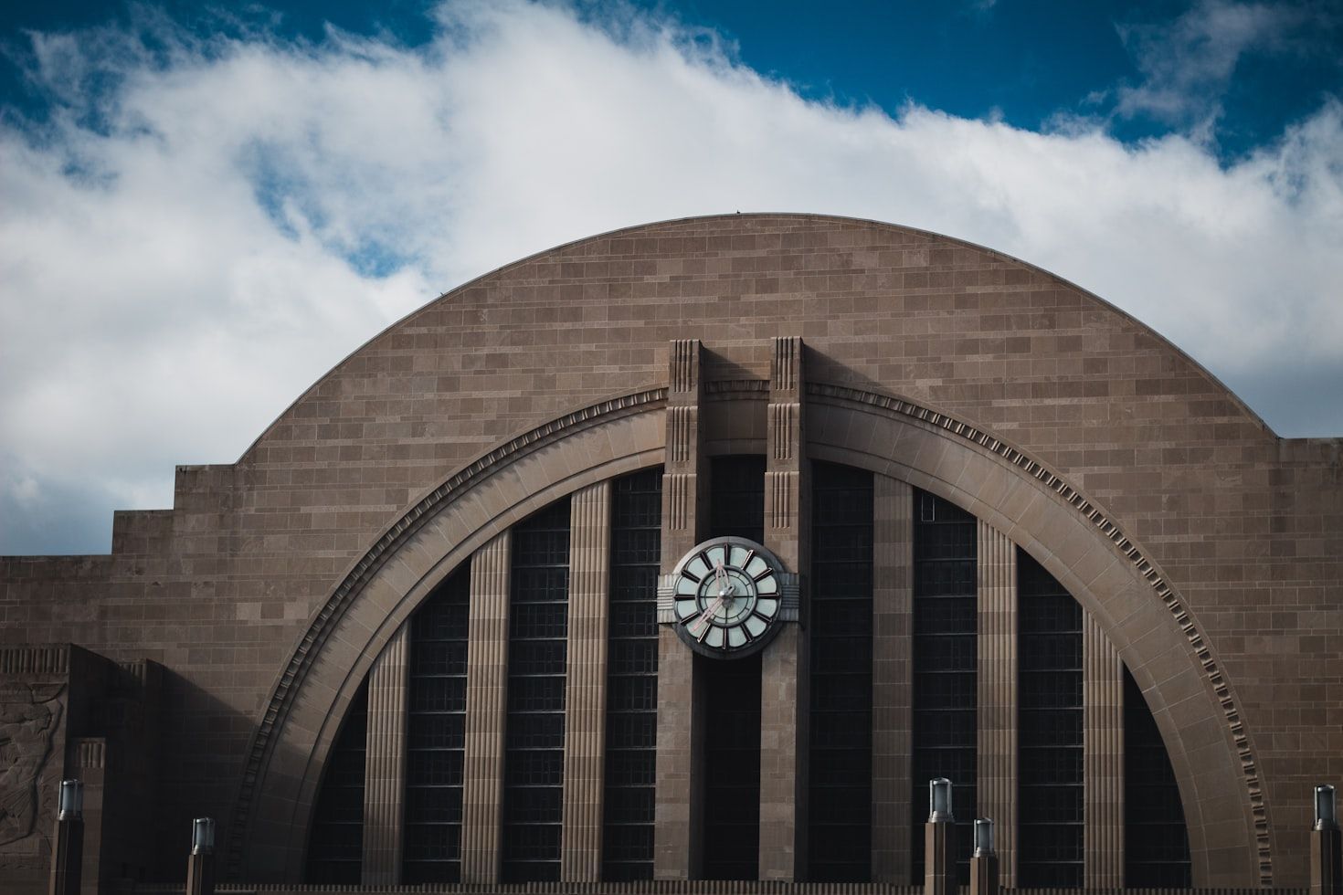 Cincinnati Union Terminal in Ohio is one of the boldest examples of Art Deco architecture in the United States. Its ten-story, half-domed entrance, green terrazzo, and the large rotunda decorated with industrial murals by Winold Reiss make this station a true architectural masterpiece. In fact, it is considered the greatest work of Alfred T. Fellheimer, who had previously designed Grand Central Terminal in New York City.
