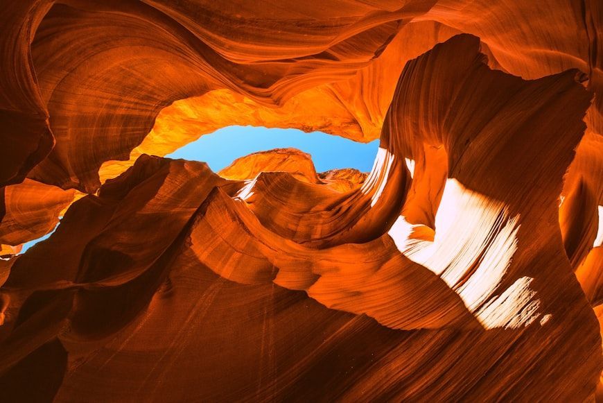 If you want to feel like you're walking through a giant red stone maze, Antelope Canyon near Page, in northern Arizona, is the perfect spot. Carved over thousands of years by flash floods and erosion, its towering walls allow sunlight to stream in from above, creating an unforgettable experience for visitors.